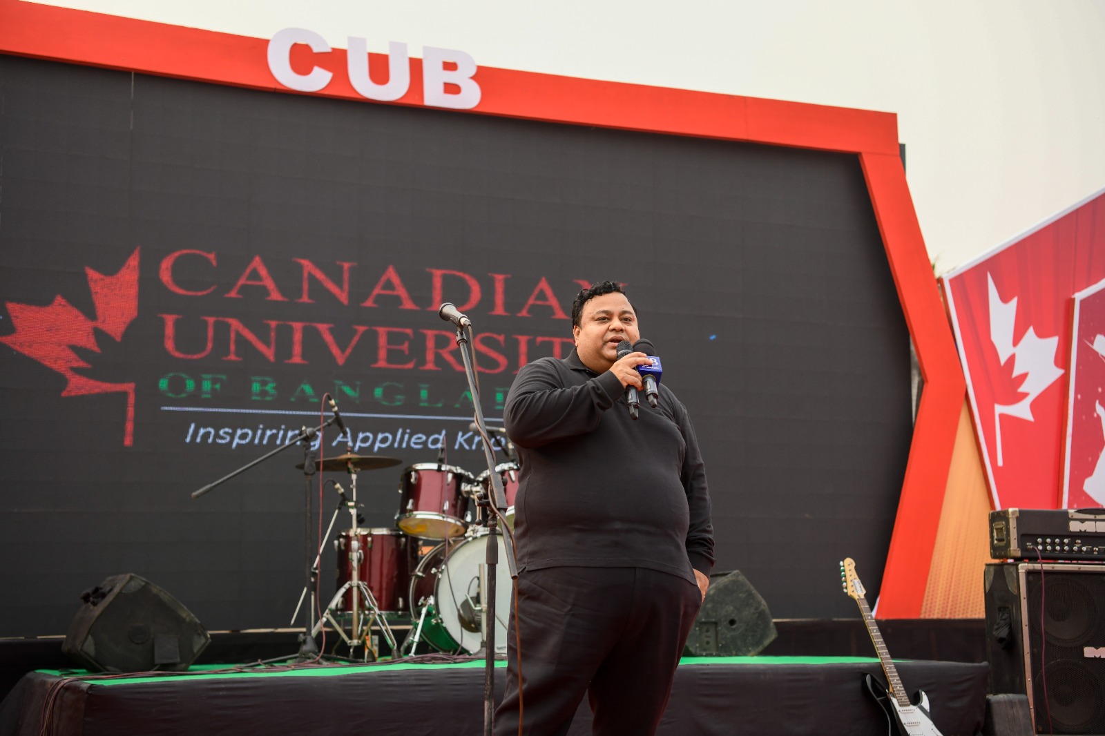 এরই মধ্যে অনুষ্ঠানস্থলে চলে আসেন কানাডিয়ান ইউনিভার্সিটি অব বাংলাদেশের প্রতিষ্ঠাতা ও বোর্ড অব ট্রাস্টিজের চেয়ারম্যান ড. চৌধুরী নাফিজ সরাফাত। তিনি শিক্ষার্থীদের উদ্দেশে বলেন, ‘আমরা আজকে অত্যন্ত আনন্দিত যে, একটা সাকসেসফুল সমাবর্তন অনুষ্ঠান করলাম। যেহেতু মহামান্য রাষ্ট্রপতি আমাদের প্রধান অতিথি ছিলেন, ওই দিন কনসার্ট করা অ্যালাউ করেননি। আজকে আমরা আমাদের পারমানেন্ট ক্যাম্পাসে এই কনসার্টের আয়োজন করেছি।