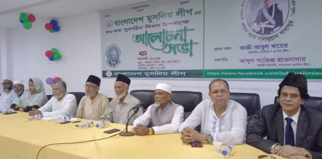 দেশে এবং আন্তর্জাতিক মহলে প্রশ্নবিদ্ধ ২০১৪ ও ২০১৮ সালের দুই দুইটি নির্বাচন থেকে জনগণ নিশ্চিত হয়েছে, বাংলাদেশে ক্ষমতাসীন সরকারের অধীনে কোন নির্বাচন সুষ্ঠু হওয়ার সুযোগ নেই। জনগণ দৃঢ় ভাবে বিশ্বাস করে যে, একমাত্র নির্বাচন-কালীন দল নিরপেক্ষ সরকারই ফিরিয়ে দিতে পারে তাদের ভোটাধিকার, পুন-প্রতিষ্ঠিত করতে পারে গণতন্ত্র, মানবাধিকার আর বাক-স্বাধীনতা। গণদাবীর সাথে সহমত পোষণ করে বাংলাদেশ মুসলিম লীগ ধারাবাহিক ভাবে বিভিন্ন সভা, আলোচনা সভা, মানববন্ধন ও কর্মী সভায় দলীয় ভাবে নিরপেক্ষ সরকারের অধীনে নির্বাচনের দাবী জানিয়ে আসছে। এই দাবী আদায়ের আন্দোলনকে আরও বেগবান ও গণ বিস্ফোরণে পরিণত করতে হলে দলমত নির্বিশেষে জনগণকে ঐক্যবদ্ধ হয়ে রাজপথে নামতে হবে। আজ (৮ আগস্ট,২০২৩) বাংলাদেশে মুসলিম লীগের ৪৮তম পুনর্গঠন দিবস উপলক্ষে জাতীয় প্রেস ক্লাবের আব্দুস সালাম হলে বিকাল ৩.০০টায় দলীয় নির্বাহী সভাপতি আব্দুল আজিজ হাওলাদারের সভাপতিত্বে অনুষ্ঠিত এক আলোচনা সভায় উপস্থিত নেতৃবৃন্দ উপরোক্ত মন্তব্য করেন।
