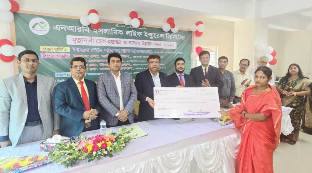 মানিকগঞ্জে সম্প্রতি এনআরবি ইসলামিক লাইফ ইন্স্যুরেন্স লিমিটেডের ব্যবসা উন্নয়ন সভা – ২০২৫ অনুষ্ঠিত হয়। অনুষ্ঠানে প্রধান অতিথি ছিলেন কোম্পানির ব্যবস্থাপনা পরিচালক ও সিইও মো: শাহ্ জামাল হাওলাদার। অনুষ্ঠঅনে বীমা গ্রাহক অরুণ হালদারের নমিনি স্ত্রী রিমা হলদার হাতে দুই লক্ষ আট হাজার সাতশত ষাট টাকার মৃত্যুদাবীর চেক তুলে দেন কোম্পানির সিইও মো: শাহ্ জামাল হাওলাদার।