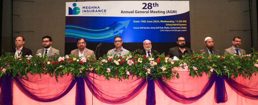 ২০ জুন, ২০২৪ মেঘনা ইন্স্যুরেন্স কোম্পানি লিমিটেড-এর ২৮তম বার্ষিক সাধারণ সভা (এজিএম) সফলভাবে অনুষ্ঠিত হয়েছে। গলফ গার্ডেন, আর্মি গলফ ক্লাব, ঢাকা সেনানিবাস, ঢাকায় সম্প্রতি সরাসরি উপস্থিত হয়ে ও ডিজিটাল প্লাটফর্মে যুক্ত থেকে অর্থাৎ হাইব্রিড পদ্ধতি ব্যবহার করে এ সভা সম্পন্ন হয়।