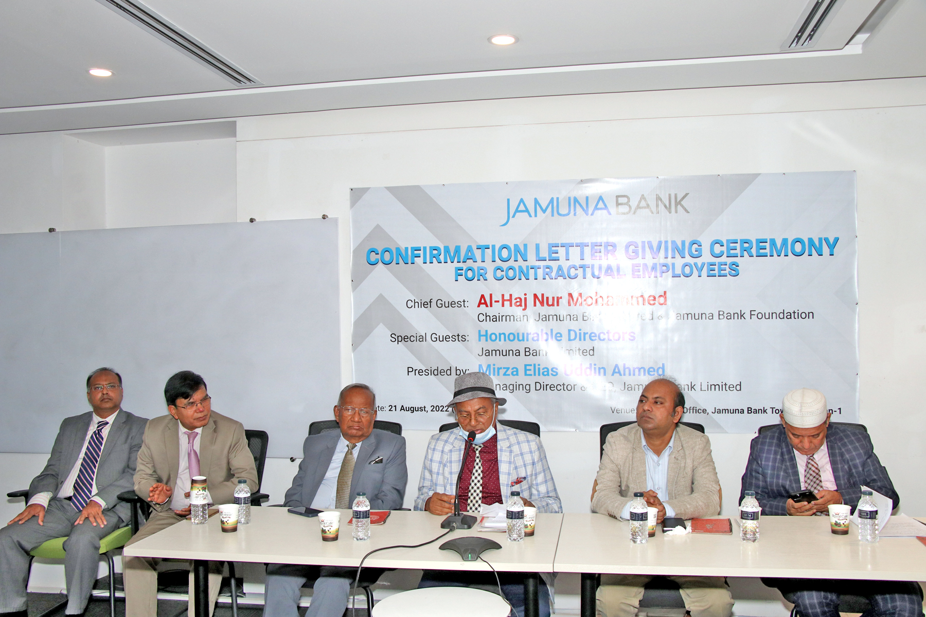 সম্প্রতি, যমুনা ব্যাংক লিমিটেড তার ১৬৭ জন চুক্তিভিত্তিক কর্মচারীকে (২১ জন বিপণন কর্মী, ১২ জন এসএমই কর্মী, এবং ২৩৪ জন পিয়ন/টি বয়/ড্রাইভার/ইলেকট্রিশিয়ান) চাকরিতে কনফার্মেশন দিয়ে স্থায়ী করেছে। এ উপলক্ষে ব্যাংকের করপোরেট অফিসে এক অনুষ্ঠানের আয়োজন করা হয়। অনুষ্ঠানে প্রধান অতিথি হিসেবে উপস্থিত ছিলেন যমুনা ব্যাংক লিমিটেড ও যমুনা ব্যাংক ফাউন্ডেশন এর সম্মানিত চেয়ারম্যান আলহাজ্ব নূর মোহাম্মদ। অনুষ্ঠানে বিশেষ অতিথি হিসেবে উপস্থিত ছিলেন ব্যাংকের পরিচালক কানুতোষ মজুমদার ও মোঃ ইসমাইল হোসেন সিরাজী। অনুষ্ঠানে সভাপতিত্ব করেন ব্যাংকের ব্যবস্থাপনা পরিচালক ও সিইও মির্জা ইলিয়াছ উদ্দিন আহম্মেদ। আলহাজ্ব নূর মোহাম্মদ বলেন