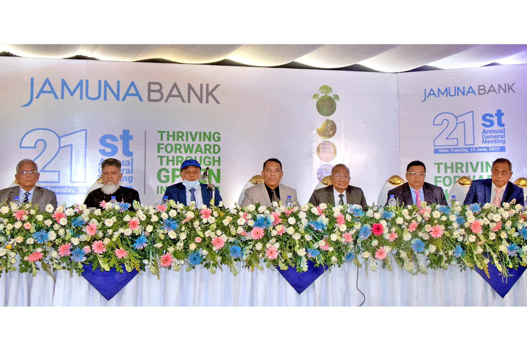 যমুনা ব্যাংক লিমিটেড এর শেয়ারহোল্ডারগণের ২১তম বার্ষিক সাধারণ সভা হাইব্রিড পদ্ধতিতে অর্থাৎ শেয়ারহোল্ডারগণের স্বশরীরে রাওয়া কনভেনশন হল,মহাখালী,ঢাকা ও ভার্চুায়াল প্লাটফর্মে ১৪ই জুন, ২০২২ইং মঙ্গলবার সকাল ১১:০০ ঘটিকায় অনুষ্ঠিত হয়। সভায় সভাপতিত্ব করেন যমুনা ব্যাংক লিমিটেড এর পরিচালনা পর্ষদ ও যমুনা ব্যাংক ফাউন্ডেশনের সম্মানিত চেয়ারম্যান আলহাজ্ব নূর মোহাম্মদ। এছাড়া সভায় উপস্থিত ছিলেন যমুনা ব্যাংক পরিচালনা পর্ষদের পরিচালক ইঞ্জিনিয়ার এ. কে. এম. মুশাররফ হুসাইন, ইঞ্জিনিয়ার মোঃ আতিকুর রহমান, মোঃ বেলাল হোসেন, কানুতোষ মজুমদারসহ অন্যান্য পরিচালকবৃন্দ। এছাড়াও উক্ত সভায় পরিচালনা পর্ষদের অডিট কমিটি-এর চেয়ারম্যান জনাব মোঃ হুমায়ুন কবির খান, ব্যাংকের ব্যবস্থাপনা পরিচালক ও সিইও মির্জা ইলিয়াছ উদ্দিন আহম্মেদ, বহিঃনিরীক্ষক প্রতিনিধি, ইন্ডিপেন্ডেন্ট স্ক্রুটিনাইজারসহ বিপুল সংখ্যক শেয়ারহোল্ডার স্বশরীরে ও ভার্চুয়ালী উপস্থিত ছিলেন। সভায় সর্ব সম্মতিক্রমে ২০২১ সালের জন্য ১৭.৫০% নগদ লভ্যাংশ অনুমোদন করা হয়।
