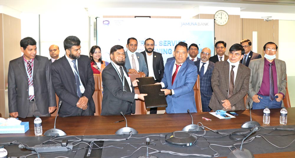 সম্প্রতি যমুনা ব্যাংক লিমিটেড এর প্রধান কার্যালয়ে যমুনা ব্যাংক লিমিটেড ও ইন্টারন্যাশনাল স্ট্যান্ডার্ড ইউনিভার্সিটি (আইএসইউ)’র সাথে একটি প্লেরোল সার্ভিস সমঝোতা চুক্তি স্বাক্ষরিত হয়। এ চুক্তির ফলে উক্ত ইউনিভার্সিটির কর্মকর্তা-কর্মচারী ও শিক্ষার্থীরা সার্ভিস চার্জ বিহীন একাউন্ট, ফ্রি ডেবিট কার্ড, ফিস জমাসহ নানা সুবিধা ভোগ করতে পারবেন। এছাড়াও আইএসইউ’র শিক্ষার্থীরা যমুনা ব্যাংকে ইন্টার্ন করার বিশেষ সুবিধা পাবেন। পক্ষান্তরে যমুনা ব্যাংকের কর্মকর্তা-কর্মচারী এবং তাদের পরিবারের সদস্যরা আইএসইউ-তে পড়াশোনার ক্ষেত্রে বিশেষ ওয়েভার ও স্কলারশিপ সুবিধা পাবেন। যমুনা ব্যাংক লিমিটেডের ব্যবস্থাপনা পরিচালক ও সিইও মির্জা ইলিয়াছ উদ্দিন আহম্মেদ এবং আইএসইউ’র পক্ষে উপাচার্য প্রফেসর ড. আব্দুল আউয়াল খান, নিজ নিজ প্রতিষ্ঠানের পক্ষে সমঝোতা স্মারকে স্বাক্ষর করেন। এসময় যমুনা ব্যাংকের উপ-ব্যবস্থাপনা পরিচালক মোঃ আব্দুস সালাম, অলটারনাটিভ ডেলিভারী চ্যানেল ডিভিশনের প্রধান আবুল বাশার মোহাম্মদ সাদি ও আইএসইউ’র ব্যবসায় প্রশাসন বিভাগের চেয়ারপারসন ড. অলি আহাদ ঠাকুর, ভারপ্রাপ্ত ট্রেজারার এইচ টি এম কাদের নেওয়াজ সহ উভয় প্রতিষ্ঠানের উর্ধ্বতন কর্মকর্তাগণ উপস্থিত ছিলেন।