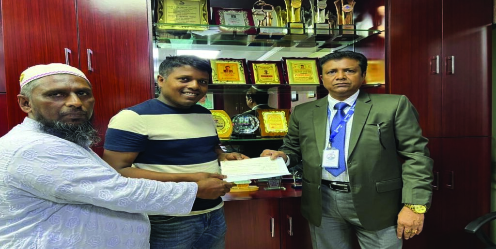 সম্প্রতি সন্ধানী লাইফ ইনস্যুরেন্স কোম্পানী লিঃ-এর ধলাগাঁও শাখা কার্যালয়ের সম্মানিত পলিসি গ্রাহক ইমন আহমেদ এর মেয়াদোত্তর বীমাদাবীর ১০,৬১,৩৭৭/- (দশ লক্ষ একষট্টি হাজার তিনশত সাতাত্তর) টাকার চেক কোম্পানীর প্রধান কার্যালয়ে বীমা গ্রাহকের এর নিকট হস্তান্তর করেন কোম্পানীর মুখ্য নির্বাহী কর্মকর্তা নিমাই কুমার সাহা। এছাড়াও উপস্থিত ছিলেন ধলাগাঁও শাখা কার্যালয়ের শাখা নির্বাহী মোঃ আনোয়ার হোসেন, জিএম(উঃ)।