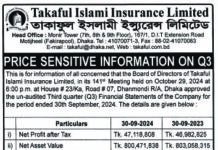 Takaful Islami Insurance Limited Price Sensitive Information on Q3