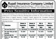 Price Sensitive Information ON Q3 Takaful Islami Insurance Limited