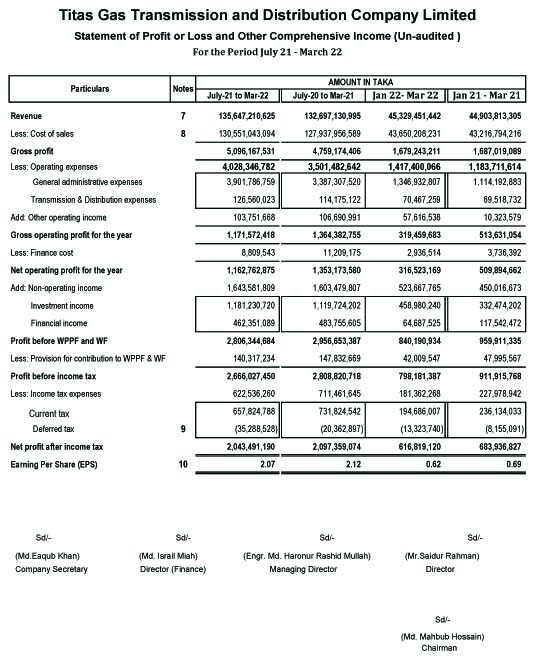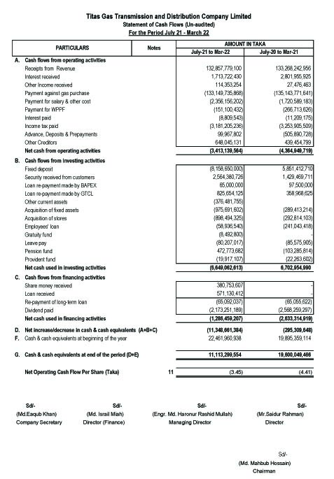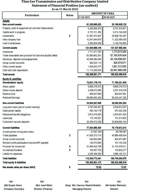 অর্থনীতি Titas Gas R&D Co Ltd. Statements Of Financial Position (Un-Audited)as 31 March 2022. April 26, 2022 Share on Facebook Tweet on Twitter tweet Titas Gas R&D Co Ltd. Statements Of Financial Position (Un-Audited)as 31 March 2022. Page 01 page 02 Page 03 Page 04