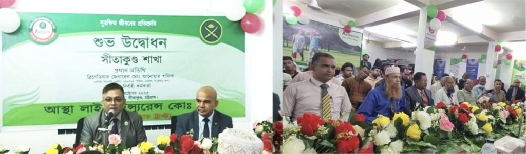 “সুরক্ষিত জীবনের প্রতিশ্রুতি” এই শ্লোগানকে সামনে রেখে সম্প্রতি আস্থা লাইফ ইন্স্যুরেন্স কোম্পানী লিমিটেড এর নতুন শাখা অফিস উদ্বোধন হয়েছে। ২৬ অক্টোবর ২০২৩ তারিখ বৃহষ্পতিবার চট্ট্রগ্রাম এর সীতাকুন্ড বাজার ডি টি রোড সংলগ্ন দেলু মিয়া শপিং কমপ্লেক্স এর ৩য় তলায় বাংলাদেশ সেনাবাহিনীর ওয়েলফেয়ার ট্রাষ্ট এর প্রতিষ্ঠান আস্থা লাইফ ইন্স্যুরেন্স কোম্পানী লিমিটেড এর শাখা অফিস আনুষ্ঠানিক উদ্বোধন করা হয়। উক্ত অনুষ্ঠানে আস্থা লাইফ ইন্স্যুরেন্স কোম্পানী লিমিটেড এর প্রধান নির্বাহী কর্মকর্তা ব্রিগেডিয়ার জেনারেল (অবঃ) মোঃ আনোয়ার শফিক, এনডিসি, পিএসসি, এমফিল, পিএইচডি প্রধান অতিথি হিসেবে উপস্থিত ছিলেন। এছাড়াও উক্ত অনুষ্ঠানে সীতাকুন্ড বাজার এর ব্যবসায়ী সমিতির সভাপতি, প্রেস ক্লাব সভাপতি, বিভিন্ন জাতীয় ও স্থানীয় পত্রিকার সাংবাদিক, বিভিন্ন ব্যাংকের ঊর্ধ্বতন কর্মকর্তা, স্থানীয় গণ্যমান্য ব্যক্তি ও ব্যবসায়ীগণ প্রমুখ সহ আস্থা লাইফ ইন্স্যুরেন্স কোম্পানী লিমিটেড এর ঊর্ধ্বতন কর্মকর্তাগন উপস্থিত ছিলেন। উল্লেখ্য, আস্থা লাইফ ইন্স্যুরেন্স মাননীয় সেনাবাহিনী প্রধানের দক্ষ নেতৃত্ব এবং দিক নির্দেশনায় জীবন বীমার প্রতি সাধারণ মানুষের নির্ভরযোগ্যতা ও বিশ^াস ফেরাতে ‘নতুন ধারার বীমা’ সেবার অঙ্গীকার নিয়ে নিরলসভাবে কাজ করে যাচ্ছে। এছাড়াও প্রতিষ্ঠানটি আস্থা, নিয়মানুবর্তিতা, প্রতিশ্রুতি রক্ষা, স্বচ্ছতা ও দায়িত্বশীলতার শীর্ষ অবস্থানে থেকে বিরল দৃষ্টান্ত স্থাপনপূর্বক বীমা শিল্পে একটি স্মার্ট জীবন বীমা কোম্পানীর রোল মডেল হিসেবে অবদান রেখে চলতে বদ্ধপরিকর।