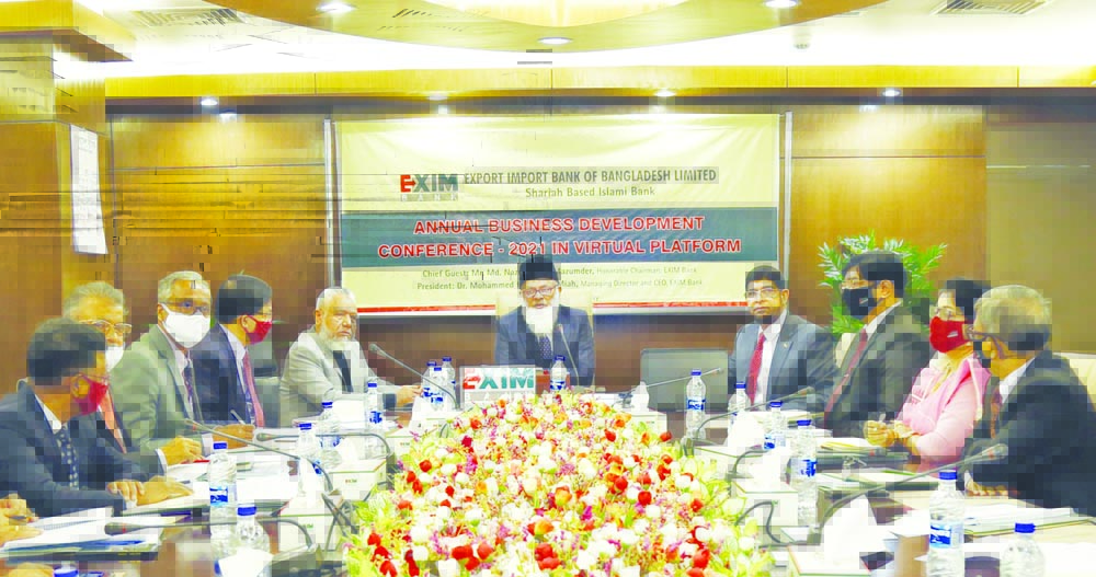 নতুন বছরে কাঙ্খিত ফলাফল অর্জনে ব্যবসায়িক পরিকল্পনা প্রণয়নের লক্ষে এক্সিম ব্যাংকের বাৎসরিক ব্যবসা উন্নয়ন সম্মেলন ২০২১ অনুষ্ঠিত হয়েছে। গত ২৪ জানুয়ারি ২০২১ অনুষ্ঠিত সম্মেলনটি ভার্চুয়াল প্ল্যাটফর্মের মাধ্যমে ব্যাংকের প্রধান কার্যালয় থেকে পরিচালনা করা হয়। সম্মেলনে প্রধান অতিথি হিসেবে উপস্থিত ছিলেন ব্যাংকের চেয়ারম্যান মোঃ নজরুল ইসলাম মজুমদার এবং সভাপতিত্ব করেন ব্যাংকের ব্যবস্থাপনা পরিচালক ও প্রধান নির্বাহী ড. মোহাম্মদ হায়দার আলী মিয়া। এ সময় আরও উপস্থিত ছিলেন ব্যাংকের অতিরিক্ত ব্যবস্থাপনা পরিচালক মোঃ ফিরোজ হোসেন, উপব্যবস্থাপনা পরিচালক মোঃ হুমায়ূন কবির ও শাহ্ মোঃ আব্দুল বারী। সম্মেলনে নিজ নিজ কর্মস্থল থেকে অনলাইনে যুক্ত হন এক্সিম ব্যাংকের সকল শাখা ব্যবস্থাপকসহ আঞ্চলিক ব্যবস্থাপকগণ। প্রধান অতিথির বক্তব্যে ব্যাংকের চেয়ারম্যান মোঃ নজরুল ইসলাম মজুমদার সকল শাখা ব্যবস্থাপকদের করনাকালিন স্বাস্থ্যবিধি মেনে ব্যাংকিং কার্যক্রম অব্যাহত রেখে যথাযথ নিয়ম পরিপালনের মধ্য দিয়ে কাঙ্খিত ফলাফল অর্জনে ঐক্যবদ্ধ ভাবে কাজ করার পরামর্শ দেন। ব্যাংকের ব্যবস্থাপনা পরিচালক ড. মোহাম্মদ হায়দার আলী মিয়া ব্যাংকের সার্বিক কার্যক্রম, ব্যবসায়িক সম্ভাবনা ও প্রতিকুলতা নিয়ে আলোচনা করেন এবং করোনাকালিন উদ্ভুত পরিস্থিতিতে কিভাবে কাঙ্খিত ফলাফল অর্জন করা যায় সে বিষয়ে সুস্পষ্ট দিকনির্দেশনা প্রদান করেন। এবং ব্যবসার ক্ষেত্র প্রসারিত করার জন্য ব্যাংক কর্তৃক গৃহীত বিভিন্ন উদ্যোগের বিষয়ও তুলে ধরেন। প্রেস বিজ্ঞপ্তি