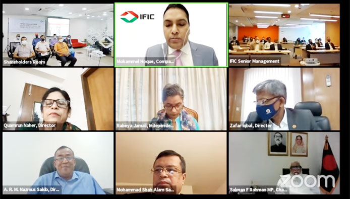 অর্থনীতির ৩০ দিন ঢেস্ক :- আইএফআইসি ব্যাংক লিমিটেড এর ৪৪তম বার্ষিক সাধারন সভা আজ সকাল ১১:০০ ঘটিকায় ডিজিটাল প্লাটফর্মে ব্যাংকের চেয়ারম্যান সালমান এফ রহমান এমপি’র সভাপতিত্বে অনুষ্ঠিত হয়। ডিজিটাল প্লাটফর্মে বিপুল সংখ্যক শেয়ার হোল্ডারের অংশগ্রহনে ২০২০ সালের জন্য ৫ শতাংশ ষ্টক লভ্যাংশ অনুমোদনসহ আর্থিক প্রতিবেদন অনুমোদন পরিচালক পরিষদের প্রতিবেদন, স্থিতিপত্র, বন্ড, লাভ-লোকসান হিসাব ও অডিট প্রতিবেদন, পরিচালক নির্বাচন, স্বতন্ত্র পরিচালক নির্বাচন, ভ্যাট কমপ্লায়েন্স, অডিটর নিয়োগ ও পারিশ্রমিক নির্ধারন শেয়ারহোল্ডারের সর্বসম্মতিক্রমে অনুমোদিত হয়। ডিজিটাল প্লাটফর্মে আরো উপস্থিত ছিলেন পরিচালনা পর্ষদের সদস্যবৃন্দ, ম্যানেজিং ডাইরেক্টর এন্ড সিইও মোহাম্মদ শাহ আলম সরোয়ার। উক্ত প্লাটফর্মে শেয়ার হোল্ডারদের ডিজিটাল মাধ্যমে পাঠানো বিভিন্ন প্রশ্ন এবং আয় ব্যয়ের হিসাব বিবরনীর উপর পাঠানো বক্তব্য উপস্থাপন করা হয়। সভায় শেয়ারহোল্ডারের বিভিন্ন ডিজিটাল মাধ্যমে ব্যাংকের আর্থিক বিবরনীর উপর পাঠানো প্রশ্নের জবাব প্রদান করেন চেয়ারম্যান সালমান এফ রহমান এমপি । এসময় তিনি ব্যাংকটির পরিশোধিত মুলধন বাড়ানো, বন্ড ইস্যু, ইসলামিক ব্যাংকিংসহ ভবিষ্যতে ব্যাংকটিকে আরও এগিয়ে নিয়ে যাওয়ার প্রত্য ব্যক্ত করেন। সভায় অংশগ্রহণকারী বিনিয়োগকারীবৃন্দ ব্যাংকের কার্যক্রমে আরো এগিয়ে নিয়ে যাওয়া এবং আগামীতে লভ্যাংশ আরো বারিয়ে দেওয়ার প্রত্যাশা করে ব্যাংকের সমৃদ্ধি কামনা করেন। ডিজিটাল প্লাটফর্মে সভাটি পরিচালনা করেন কোম্পানী সচিব মো: মোকাম্মেল হক, এফসিএস ।