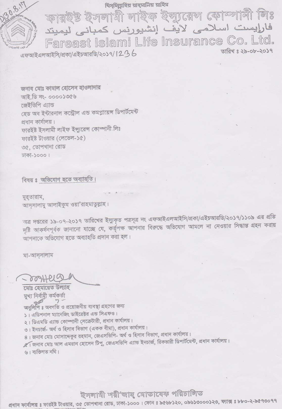 এদিকে হেড অব অডিট মোঃ কামাল হোসেন হাওলাদার বিভিন্ন উপায়ে চেষ্টা করেও উক্ত প্রতিবেদন দাতা প্রবির কুমার বিশ্বাসকে ফারইস্ট ইসলামী লাইফ থেকে বরখাস্ত করতে না পারায় হেড অব অডিট মোঃ কামাল হোসেন হাওলাদারের এসব দুনীতির থলের বিড়াল বেরিয়ে আসে বলে প্রমানিত হয়। এখানে সবচেয়ে বড় বিষয় হল দীর্ঘ সময় থেকে অর্থ্যাৎ ২০১২ থেকে ২০১৭ সাল পর্যন্ত ফারইস্ট ইসলামী লাইফের লাইফ ফান্ড প্রায় শুণ্যের কোটায় আসার মহা দুর্নীতির সময়ের দুর্নীতির বরপুত্র উক্ত কোম্পানীর ব্যবস্থাপনা পরিচালক ছিলেন মোঃ হেমায়েত উল্যাহ যিনি নজরুল-খালেক গং অপরাধী ও পাচারকাজে সহযোগিতার কারেন। ফারইস্ট ইসলামী লাইফ কোম্পানীর দুর্নীতির বরপুত্র সেই ব্যবস্থাপনা পরিচালক মোঃ হেমায়েত উল্যাহ, ২০১২ থেকে ২০১৭ সাল পর্যন্ত নিজের এই মহা দুর্নীতির কারনে বিএসইসি কর্তৃক অপসারিত ও বহিস্কৃত হন এবং দুদকের মামলা মাথায় নিয়ে চলেছেন। এখানে বিশেষআবে উল্লেখ্য যে অপসারিত ও বহিস্কৃত ব্যবস্থাপনা পরিচালক মোঃ হেমায়েত উল্যাহ, যিনি এক বিজ্ঞপ্তির মাধ্যমে ফারইস্ট ইসলামী লাইফের হেড অব অডিট মোঃ কামাল হোসেন হাওলাদারকে প্রধান কার্যালয়ের ২০১৬ সালে প্রধান কার্যালয়ের নিরীক্ষা বিভাগের কর্মকর্তা শফিকুর রহমান, জেএসভিপি-৭৫, এবং মোঃ রশেদ আক্তার মাওলা, ভিপি-৮৪, এর সঠিক তদন্তে ধরা পড়া সমস্থ অভিযোগ থেকে অব্যাহতি দেন। অবস্থা দেখে মনে হয়, “এটা যেন তিন খুনের প্রমানিত অপরাধীকে তিন দিনের জেল দিয়ে অব্যাহতি দেওয়া, অর্থ্যাৎ গুরু অপরাধের লঘু দন্ড।” ফারইস্ট ইসলামী লাইফের ২০১২ থেকে ২০১৭ সাল পর্যন্ত লাইফ ফান্ড প্রায় শুণ্যের কোটায় আসার মহা দুর্নীতির সময়ে কোম্পানীর অডিট কমিটির চেয়ারম্যান ছিলেন ইন্স্যুরেন্স ডেভলাপমেন্ট এন্ড রেগুলেটরি অথোরেটি (আইডিআরএ) এর বর্তমান চেয়ারম্যান ড. মোশাররফ হোসেন, এফসিএ।