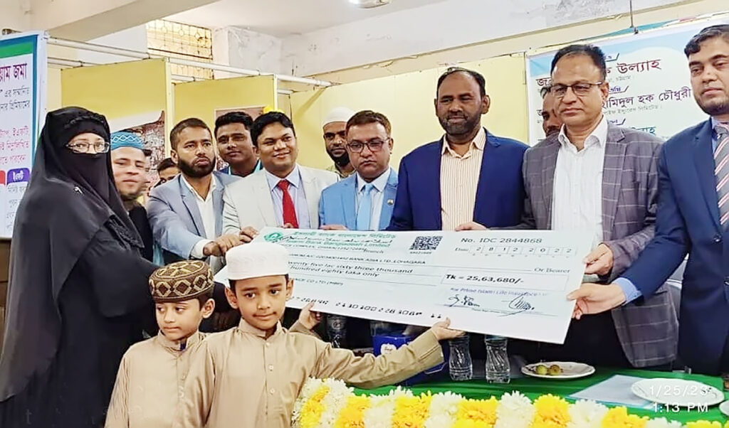 ২৫,৬৩,৬৮০/-(পচিশ লক্ষ তেষট্টি হাজার ছয়শত আশি) টাকার চেক হস্তান্তর অনুষ্ঠানে উপস্থিত ছিলেন প্রাইম ইসলামী লাইফের উপদেষ্টা এ.টি.এম হামিদুল হক চৌধুরী, ডিএমডি (উন্নয়ন) সলিম উল্ল্যাহ সহ কোম্পানীর ঊর্ধ্বতন কর্মকর্তাবৃন্দ।