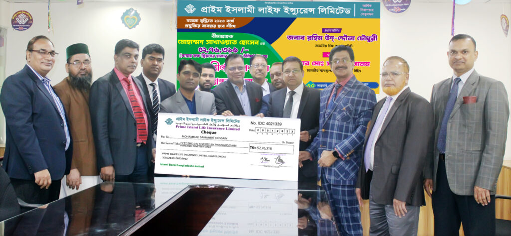 ৩০ জানুয়ারি, ২০২৩ প্রাইম ইসলামী লাইফ ইন্স্যুরেন্স লিমিটেডের বীমাগ্রাহক সাখাওয়াত হোসেন-এর মেয়াদোত্তর বীমাদাবীর ৫২,৭৬,৩১৬/- (বায়ান্ন লক্ষ ছিয়াত্তর হাজার তিনশত ষোল) টাকার চেক হস্তান্তর অনুষ্ঠান প্রধান কার্যালয়ে অনুষ্ঠিত হয়। চেক প্রদান অনুষ্ঠানে উপস্থিত ছিলেন কোম্পানীর চীফ কনসালট্যান্ট রহিম উদ-দ্দৌলা চৌধুরী, মুখ্য নির্বাহী কর্মকর্তা মোঃ সামছুল আলম, ডিএমডি ও ইনচার্জ উন্নয়ন প্রশাসন মোঃ আনিছুর রহমান মিয়া, ডিএমডি (উন্নয়ন) এম এ মতিন, এএমডি ও ইনচার্জ মানব সম্পদ ও প্রশাসন বিভাগ কাজী আবুল মঞ্জুর, এএমডি ও ইনচার্জ ঢাকা কর্পোরেট জোন-০১ মোহাম্মদ নূর-ই-আলম,এসইভিপি ও ইনচার্জ সিএফও মোঃ নাছির উদ্দিন এবং দিতীয়ত