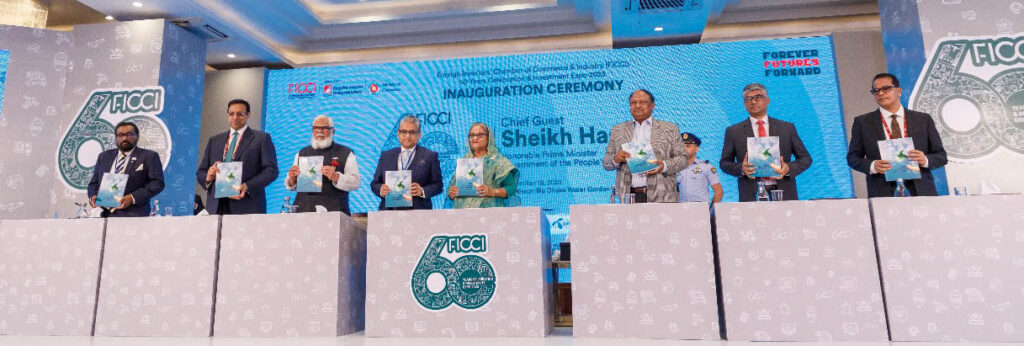 ১৯ নভেম্বর, ২০২৩- বাংলাদেশের অর্থনৈতিক প্রবৃদ্ধিতে রাখা ধারাবাহিক ভূমিকা এবং সেই গৌরবময় যাত্রার ছয় দশক উদযাপন উপলক্ষ্যে ফরেন ইনভেস্টরস চেম্বারস অব কমার্স অ্যান্ড ইন্ডাস্ট্রি’র (ফিকি) ৬০তম বর্ষপূর্তি ও ইনভেস্টমেন্ট এক্সপো ২০২৩-এর উদ্বোধন করেছেন গণপ্রজাতন্ত্রী বাংলাদেশ সরকারের প্রধানমন্ত্রী শেখ হাসিনা, এমপি। আজ (১৯ অক্টোবর, ২০২৩) থেকে রেডিসন ব্লু ঢাকা ওয়াটার গার্ডেনে দুই-দিনব্যাপি এই অনুষ্ঠান ও এক্সপো শুরু হয়েছে।