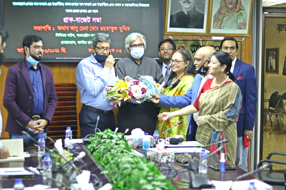 রাজস্ব বোর্ডের মধ্যকার প্রাক-বাজেট আলোচনা সভা অনুষ্ঠিত হয়। সভায় সভাপতিত্ব করেন জনাব আবু হেনা মোঃ রহমাতুল মুনিম, সিনিয়র সচিব, আভ্যন্তরীণ সম্পদ বিভাগ ও চেয়ারম্যূান, জাতীয় রাজস্ব বোর্ড। সভায় বিসিআই সভাপতি আনোয়ার-উল আলম চৌধুরী (পারভেজ), উর্দ্ধতন সহ-সভাপতি মিসেস প্রীতি চক্রবর্ত্তী,সহ-সভাপতি জনাব শহিদুল ইসলাম নিরু সহ বিসিআই এর পরিচালকবৃন্দ উপস্থি’ত ছিলেন। আসন্ন জাতীয় বাজেটে (২০২১-২০২২) এ অন্তর্ভূ৩ির জন্য বিসিআই সভাপতি নি¤েœাক্ত সুপারিশ উপস্বাপন করেন:-