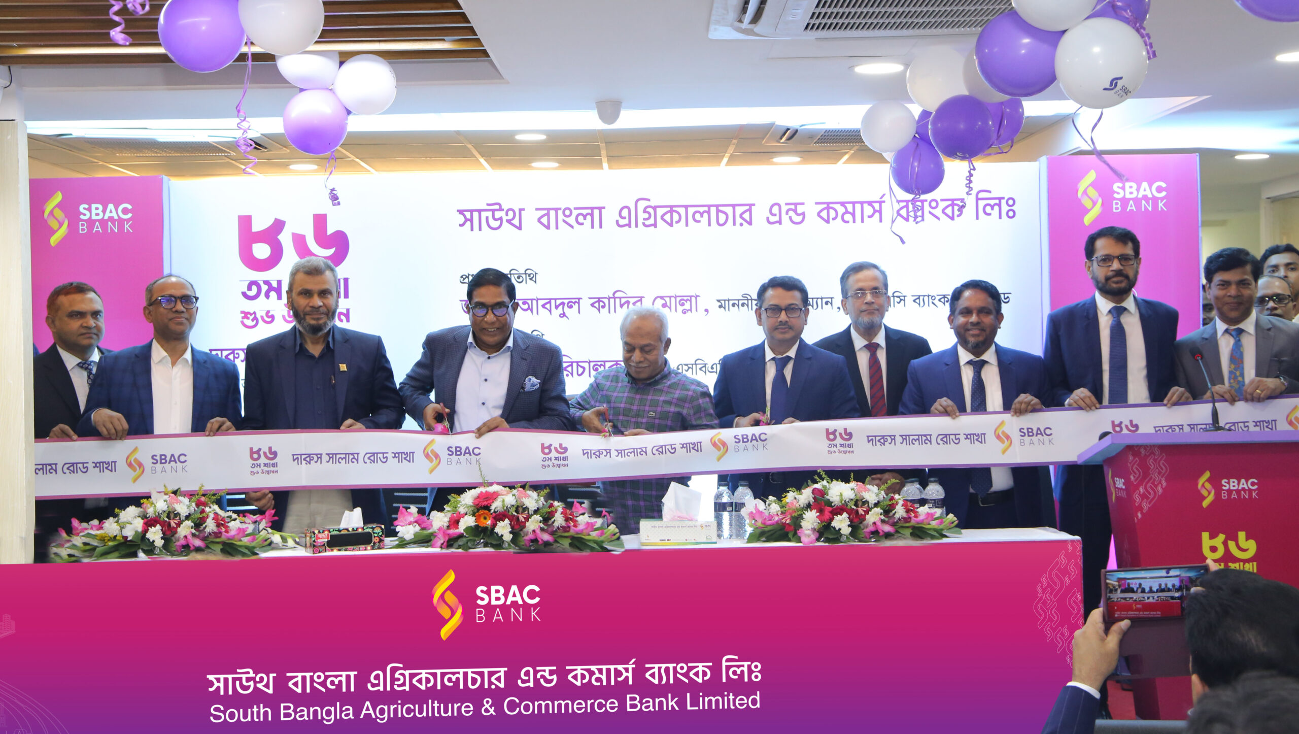 সাউথ বাংলা এগ্রিকালচার এন্ড কমার্স (এসবিএসি) ব্যাংক লিঃ এর ৮৬ তম ‘‘দারুস সালাম রোড শাখা’’ মিরপুর-১, ৫/এইচ, দারুস সালাম রোডস্থ সংহিতা ভবনে উদ্বোধন করা হয়েছে। অনুষ্ঠানে প্রধান অতিথি এসবিএসি ব্যাংকের পরিচালনা পর্ষদের চেয়ারম্যান আবদুল কাদির মোল্লা এবং বিশেষ অতিথি হিসেবে ব্যাংকের অন্যতম পরিচালক মোহাম্মদ নাজমুল হক উপস্থিত ছিলেন। ব্যবস্থাপনা পরিচালক ও প্রধান নির্বাহী কর্মকর্তা (ভারপ্রাপ্ত) হাবিবুর রহমান এর সভাপতিত্বে অনুষ্ঠানে আরও উপস্থিত ছিলেন ব্যাংকের উপ-ব্যবস্থাাপনা পরিচালক নুরুল আজীম, জনাব এ.কে.এম.রাশেদুল হক চৌধুরী, প্রধান কার্যালয়ের বিভিন্নডিভিশনের প্রধানগণ এবং স্থানীয় ব্যবসায়ীবৃন্দসহ সমাজের গণ্যমান্য ব্যক্তিবর্গ। এ নিয়ে এসবিএসি ব্যাংকের শাখা ও উপশাখার সংখ্যা ১১০ টিতে উন্নীত হলো।