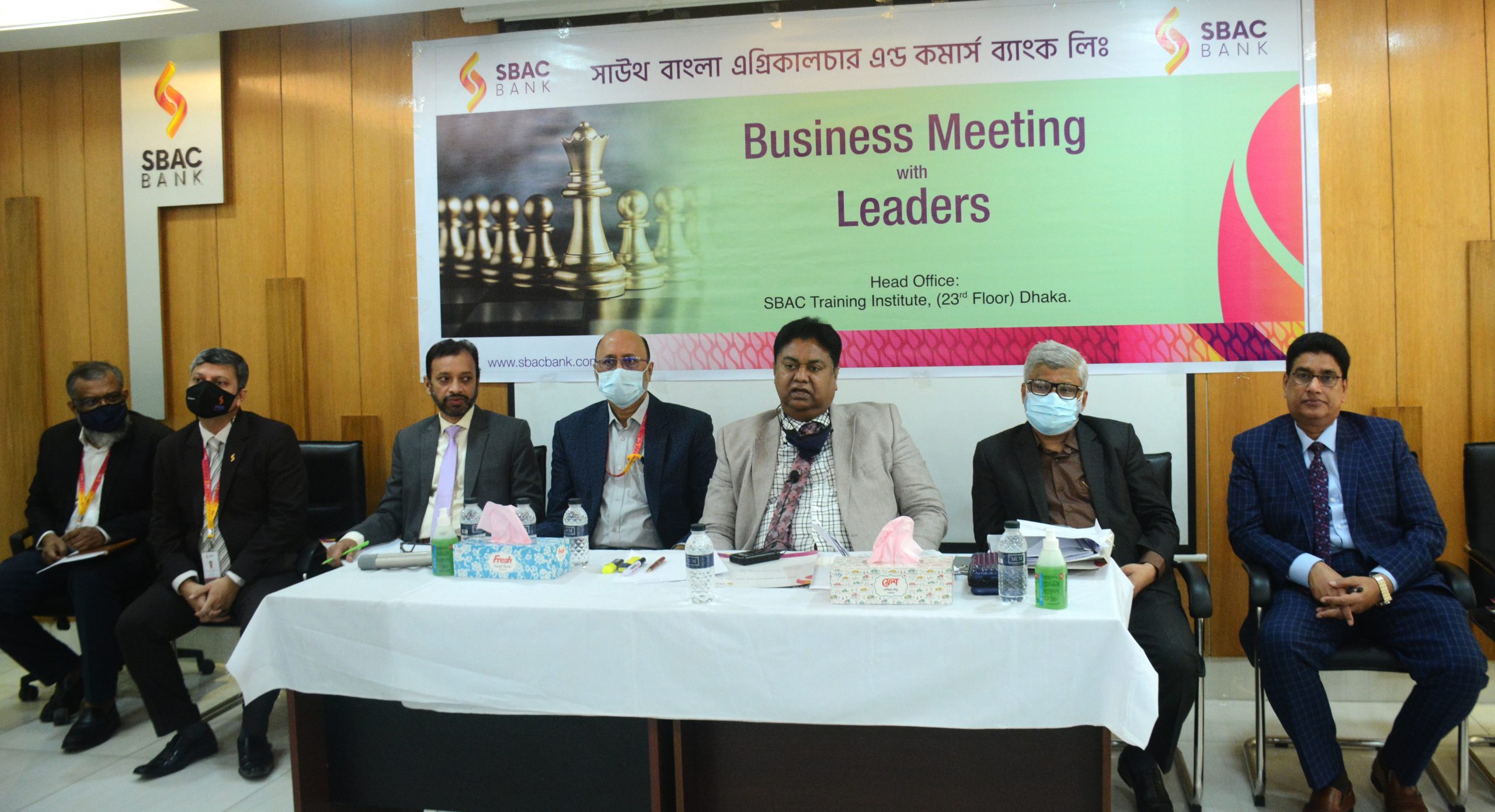 সাউথ বাংলা এগ্রিকালচার এন্ড কমার্স (এসবিএসি) ব্যাংকের ঢাকা অঞ্চলের শাখাব্যবস্থাপকদের সঙ্গে এক ব্যবসায়িক সভা শনিবার ৫ জুন, ২০২১ ব্যাংকের প্রধান কার্যালয়ে অনুষ্ঠিত হয়েছে। এতে প্রধান অতিথি হিসেবে উপস্থিত ছিলেন ব্যাংকের ব্যবস্থাপনা পরিচালক ও প্রধান নির্বাহী মোসলেহ্ উদ্দীন আহমেদ। উপব্যবস্থাপনা পরিচালক মোঃ কামাল উদ্দিনের সভাপতিত্বে সভায় উপব্যবস্থাপনা পরিচালক শফিউদ্দিন আহমেদ, মোঃ আলতাফ হোসেন ভুঁইয়া, এসইভিপি ও মানবসম্পদ বিভাগের প্রধান মোঃ মিজানুর রহমান, ইভিপি ও ব্যাংকিং অপারেশন্স বিভাগের প্রধান এস. এম. ইকবাল মেহেদী, ইভিপি ও ট্রেজারি বিভাগের প্রধান মোহাম্মদ আসাদুল হকসহ ব্যাংকের বিভাগীয় প্রধান ও ঢাকার শাখা ব্যবস্থাপকরা উপস্থিত ছিলেন।