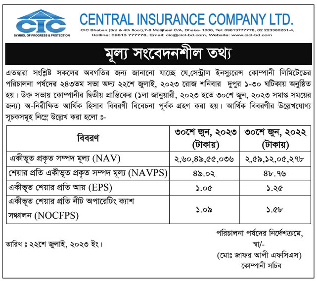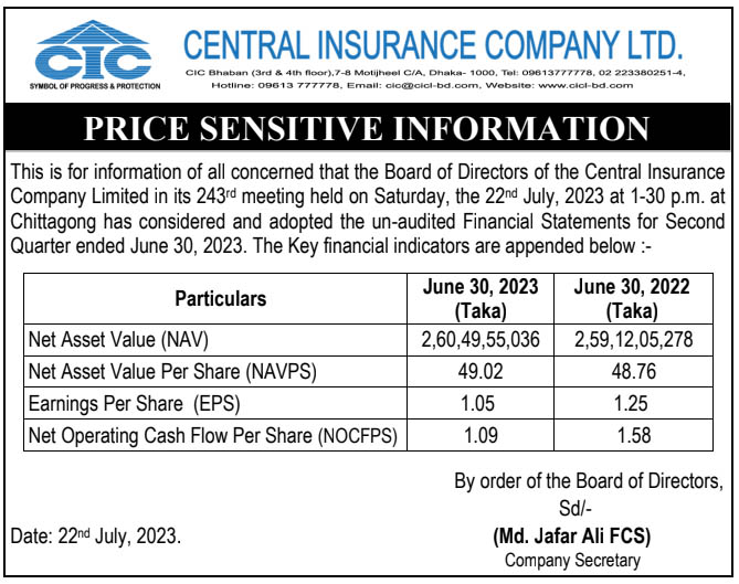 পিএসআই নিউজ PSI 2nd Quarter 2023(un-audited) Central Insurance Company Limited. July 22, 2023 Share on Facebook Tweet on Twitter tweet PSI 2nd Quarter 2023(un-audited) Central Insurance Company Limited.