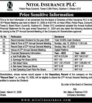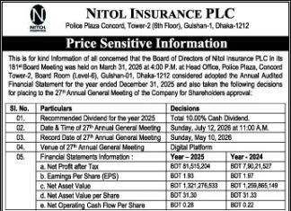 Price Sensitive Information of Nitol Insurance PLC