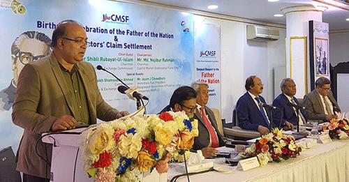 মঙ্গলবার (১৫ মার্চ) ‘বঙ্গবন্ধু শেখ মুজিবুর রহমানে জন্মবার্ষিকী উদযাপন ও শেয়ারহোল্ডারদের দাবি মিমাংসা’-কে কেন্দ্র করে ক্যাপিটাল মার্কেট স্ট্যাবিলাইজেশন ফান্ডের (সিএমএসএফ) আয়োজিত অনুষ্ঠানে প্রধান অতিথির বক্তব্যে তিনি এ কথা বলেন। এতে বিশেষ অতিথি হিসেবে বিএসইসির কমিশনার ড. শেখ সামসুদ্দিন আহমেদ ও বিএপিএলসির সদ্য বিদায়ী সভাপতি আজম জে চৌধুরী উপস্থিত ছিলেন। এছাড়া সিএমএসএফের সিওও মনোয়ার হোসেন উপস্থিত ছিলেন। অনুষ্ঠানে সভাপতিত্ব করেন সিএমএসএফ এর চেয়ারম্যান মো. নজিবুর রহমান।