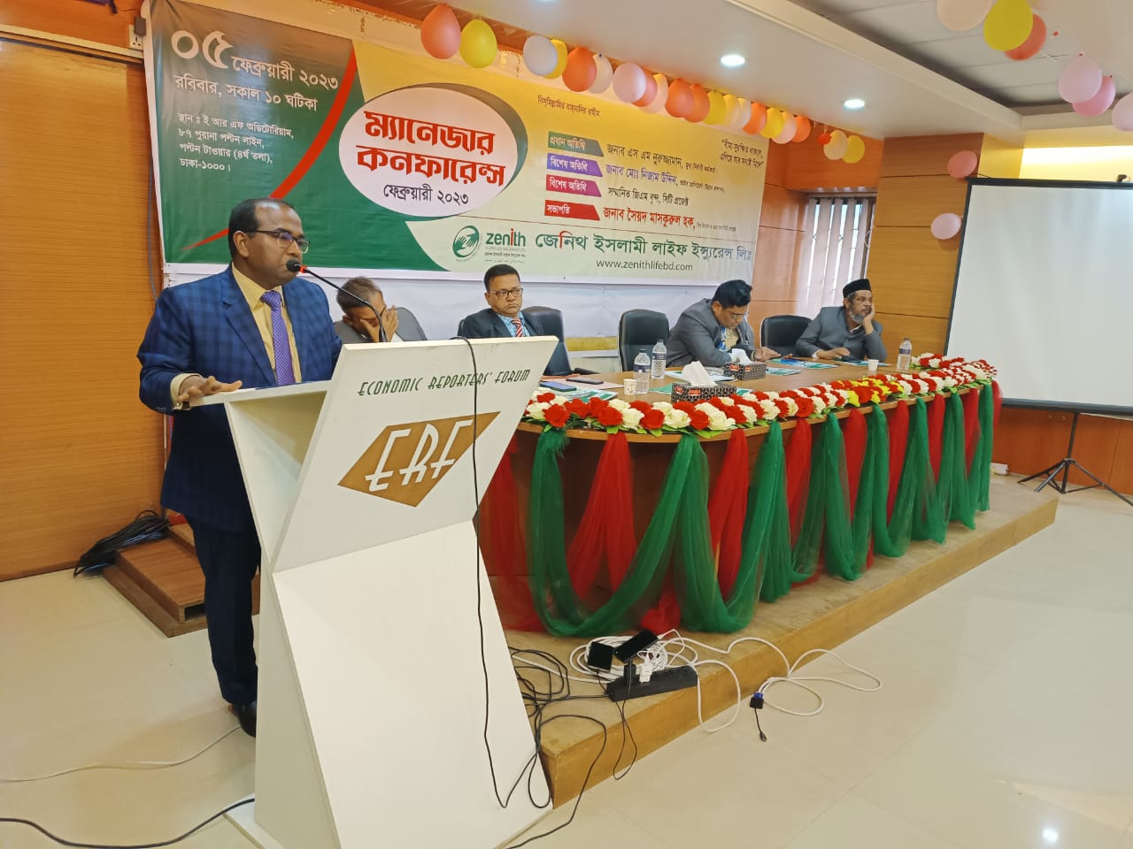 ৫ ফেব্রুয়ারি ২০২৩ রবিবার ঢাকায় পল্টন টাওয়ারের ইআরএফ মিলনায়তনে জেনিথ ইসলামি লাইফ ইন্সুইরেন্স লি: এর ম্যানেজার কনফারেন্স অনুষ্ঠিত হয়, এতে প্রধান অতিথি হিসেবে উপস্থিত ছিলেন কোম্পানির মূখ্য নির্বাহী কর্মকর্তা ও বাংলাদেশ ইন্স্যুরেন্স ফোরামের ভারপ্রাপ্ত সেক্রেটারী এস এম নুরুজ্জামান, সভাপতিত্ব করেন কোম্পানির সিঃ জেনারেল ম্যানেজার সৈয়দ মাসকুরুল হক, বিশেষ অতিথি হিসেবে উপস্থিত ছিলেন কোম্পানির ভাইস-প্রেসিডেন্ট(ইনচার্জ উন্নয়ন প্রসাশন বিভাগ) মো: নিজাম উদ্দিন, কোম্পানির জি এম (উঃ) সৈয়দ মাহমুদুল হক আক্কাস, মোহাম্মদ আলাউদ্দিন, মোঃ মনির হোসেন, এ এফ উবাইদুল্লাহ মামুন, মোঃ আশরাফুল ইসলাম এবং সারাদেশ থেকে আগত ডি জি এম, এজি এম, বি এম সহ প্রায় শতাধিক কর্মকর্তা উপস্থিত ছিলেন।