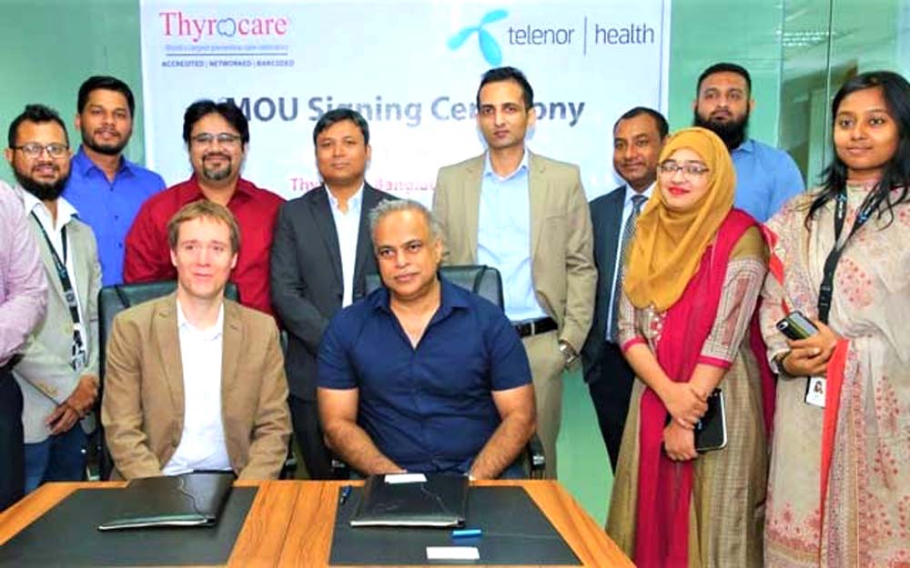 টেলিনর গ্রুপের ডিজিটাল হেলথ সাবসিডিয়ারি টেলিনর হেলথ এবং থাইরোকেয়ার বাংলাদেশ লিমিটেডের মধ্যে একটি চুক্তি হয়েছ। সম্প্রতি রাজধানীর গুলশানে থাইরোকেয়ার অফিসে এই চুক্তি হয় বলে এক সংবাদ বিজ্ঞপ্তিতে জানানো হয়েছে।