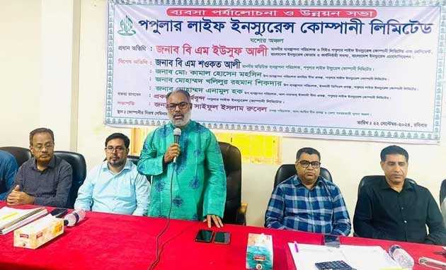 পপুলার লাইফ ইনস্যুরেন্স কোম্পানী লিমিটেডের যশোর অঞ্চলের উন্নয়ন কর্মকর্তাদের নিয়ে ব্যবসা পর্যালোচনা ও উন্নয়ন সভা অনুষ্ঠিত হয়েছে। রবিবার (২২ সেপ্টেম্বর) সকালে যশোরে পপুলার লাইফ ইনস্যুরেন্স কোম্পানী লিমিটেডের নিজস্ব ভবন মিলনায়তনে এ ব্যবসা পর্যালোচনা ও উন্নয়ন সভা অনুষ্ঠিত হয়। পপুলার লাইফ ইনস্যুরেন্স কোম্পানী লিমিটেডের আল আমিন বীমা প্রকল্পের প্রকল্প পরিচালক ও জেলা সমন্বয়কারী সৈয়দ সাইফুল ইসলাম রুবেলের সভাপতিত্বে ব্যবসা পর্যালোচনা ও উন্নয়ন সভায় প্রধান অতিথি হিসেবে বক্তব্য রাখেন পপুলার লাইফ ইনস্যুরেন্স কোম্পানী লিমিটেডের ব্যবস্থাপনা পরিচালক ও সিইও, বাংলাদেশ ইনস্যুরেন্স ফোরামের প্রেসিডেন্ট ও বাংলাদেশ ইনস্যুরেন্স অ্যাসোসিয়েশনের কার্য নির্বাহী সদস্য বি এম ইউসুফ আলী।