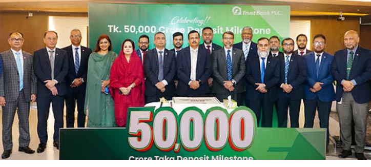দেশের বেসরকারি খাতের ট্রাস্ট ব্যাংক পিএলসি’র আমানত ৫০ হাজার কোটি টাকার মাইলফলক অতিক্রম করেছে। গত সেপ্টেম্বর শেষে ব্যাংকটির আমানত বেড়ে দাঁড়িয়েছে ৫০ হাজার ৩৪৪ কোটি টাকা।ব্যাংকটির কর্মকর্তারা কেক কেটে উদযাপন করেছেন ৫০ হাজার কোটি টাকার আমানত সংগ্রহের মাইলফলক অর্জনের আনন্দ ।