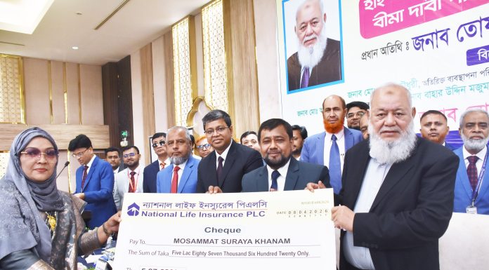 কক্সবাজারে ন্যাশনাল লাইফের ৫কোটি টাকার বীমা দাবী পরিশোধ
