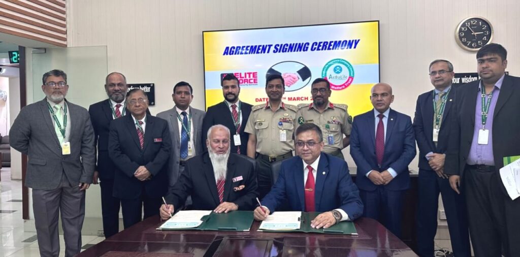 এলিট সিকিউরিটি সার্ভিসেস লিঃ (এলিট ফোর্স) এবং বাংলাদেশ আর্মি ওয়েলফেয়ার ট্রাস্টের একমাত্র জীবন বীমা প্রতিষ্ঠান আস্থা লাইফ ইন্স্যুরেন্স কোম্পানী লিমিটেড এর মধ্যে গ্রুপ ইন্স্যুরেন্স চুক্তি স্বাক্ষরিত হয়েছে। ০৭ মার্চ বৃহষ্পতিবার সেনা সদরে এই চুক্তি স্বাক্ষর অনুষ্ঠিত হয়। এলিট সিকিউরিটি সার্ভিসেস এর ব্যবস্থাপনা পরিচালক ব্রিগেডিয়ার জেনারেল শরীফ আজিজ, পিএসসি (অবঃ) এবং আস্থা লাইফ ইন্স্যুরেন্স কোম্পানী এর মুখ্য নির্বাহী কর্মকর্তা ব্রিগেডিয়ার জেনারেল মোঃ আনোয়ার শফিক, এনডিসি, পিএসসি (অবঃ), এমবিএ, এমএসএস, পিজিডি (ইউএসএ), এমফিল, পিএইচডি এই চুক্তিতে স্বাক্ষর করেন। চুক্তি স্বাক্ষর অনুষ্ঠানে উপস্থিত ছিলেন বাংলাদেশ সেনাবাহিনীর এডজুটেন্ট জেনারেল এবং আস্থা লাইফ ইন্স্যুরেন্সের পরিচালনা পর্ষদের ভাইস চেয়ারম্যান মেজর জেনারেল মুহাম্মদ যুবায়ের সালেহীন, এসইউপি, এনডিইউ, পিএসসি। এছাড়াও উভয় পক্ষের সামরিক ও অসামরিক ঊর্ধ্বতন কর্মকর্তাবৃন্দ উক্ত অনুষ্ঠানে উপস্থিত ছিলেন। এই চুক্তির মাধ্যমে এলিট সিকিউরিটি সার্ভিসেস লিঃ এর সম্মানিত সদস্যগণ আস্থা লাইফ ইন্স্যুরেন্সের গ্রুপ বীমার আওতায় জীবন ঝুঁকির বিপরীতে নানাবিধ বীমা কভারেজ পাবেন। উল্লেখ্য, আস্থা লাইফ ইন্স্যুরেন্স কোম্পানী সম্মানিত চেয়ারম্যান ও সেনাবাহিনী প্রধানের দক্ষ নেতৃ ত্বে পরিচালিত জীবন বীমার প্রতি সাধারণ মানুষের নির্ভরযোগ্যতা ও বিশ^াস ফেরাতে ‘নতুন ধারার বীমা’ সেবার অঙ্গীকার নিয়ে নিরলসভাবে কাজ করে যাচ্ছে। এছাড়াও প্রতিষ্ঠানটি ইতিমধ্যে আস্থা, নিয়মানুবর্তিতা, প্রতিশ্রুতি রক্ষা, স্বচ্ছতা ও দায়িত্বশীলতার শীর্ষ অবস্থানে থেকে বিরল দৃষ্টান্ত স্থাপনপূর্বক বীমা শিল্পে একটি নতুন ধারার স্মার্ট জীবন বীমা কোম্পানীর রোল মডেল হিসেবে অবদান রেখে চলছে।