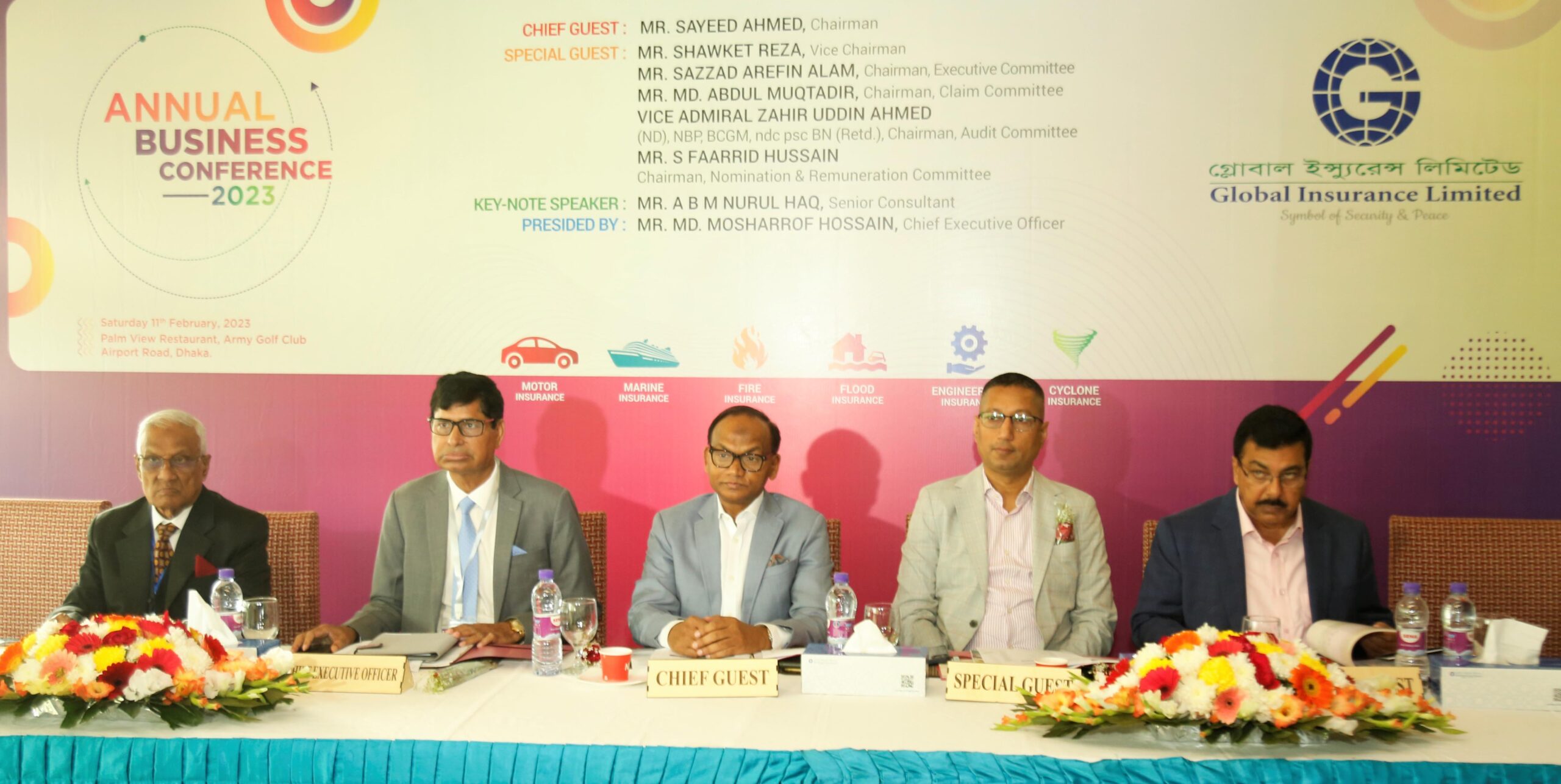 গ্লোবাল ইন্স্যুরেন্স লিমিটেড এর বার্ষিক ব্যবসা সম্মেলন-২০২৩ গত ১১ ফেব্রুয়ারি ২০২৩ রোজ শনিবার আর্মি গলফ ক্লাবের পামভিউ রেস্টুরেন্টে-এ অনুষ্ঠিত হয়। মুখ্য নির্বাহী কর্মকর্তা মোঃ মোশারফ হোসেন এর সভাপতিত্বে কোম্পানির চেয়ারম্যান জনাব সাঈদ আহমেদ প্রধান অতিথি হিসেবে উপস্থিত থেকে সম্মেলন উদ্বোধন করেন। সম্মেলনে বিশেষ অতিথি হিসেবে উদ্বোধনী পর্বে বক্তব্য রাখেন ভাইস চেয়ারম্যান শওকত রেজা, অডিট কমিটির চেয়ারম্যান ও স্বতন্ত্র পরিচালক ভাইস এডমিরাল জহির উদ্দিন আহমেদ। এছাড়াও সম্মেলনে কোম্পানির পরিচালক এস এম সারোয়ার আলম, মোঃ মনিরুল ইসলাম, সৈয়দ বদরুল আলম, স্বতন্ত্র পরিচালক মোঃ মোস্তাফিজুর রহমান উপস্থিত ছিলেন। প্রধান অতিথির বক্তব্যে কোম্পানির চেয়ারম্যান সাঈদ আহমেদ সম্মানিত বীমা গ্রাহকদের সর্বোত্তম সেবা প্রদানের বিষয়ে গুরুত্বারোপ করেন।