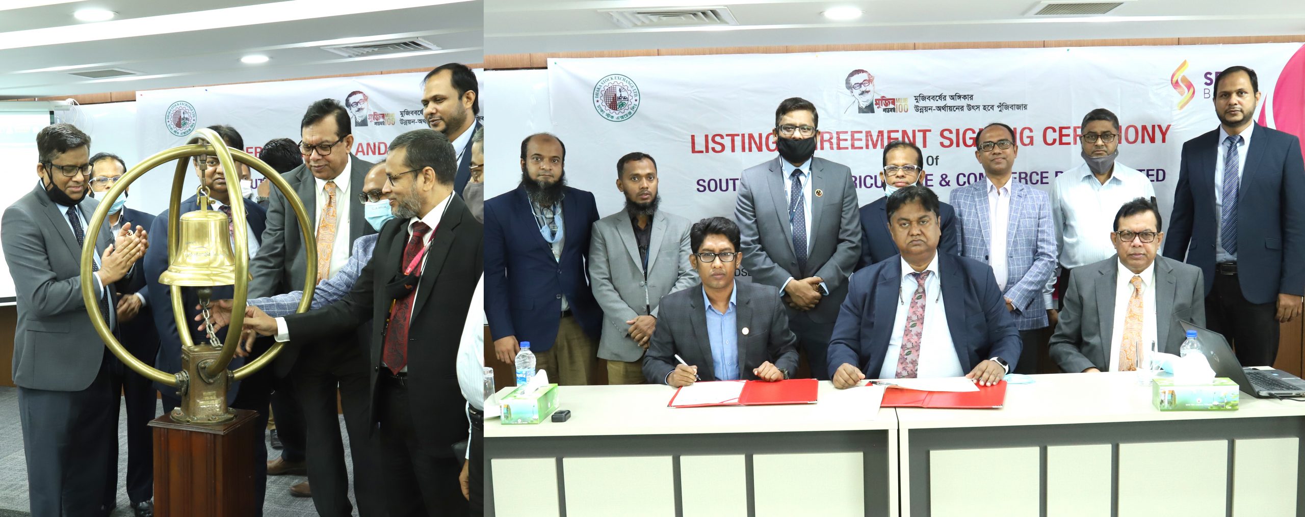 দেশের পুঁজিবাজারে ৩২তম ব্যাংক হিসেবে সাউথ বাংলা এগ্রিকালচার এন্ড কমার্স (এসবিএসি) ব্যাংকের লেনদেন বুধবার শুরু হয়েছে। এদিনে ঢাকা স্টক এক্সচেঞ্জের ঐতিহ্য অনুসারে সকাল ১০টায় ঘণ্টা বাজিয়ে লেনদেনের শুভ সূচনা করেন ব্যাংকের চেয়ারম্যান এস. এম. আমজাদ হোসেন। এর আগে পুঁজিবাজারে তালিকাভুক্তিতে উভয় প্রতিষ্ঠানের মধ্যকার চুক্তিপত্র স্বাক্ষরিত হয়। এতে স করেন সাউথ বাংলা ব্যাংকের ব্যবস্থাপনা পরিচালক ও প্রধান নির্বাহী মোসলেহ উদ্দীন আহমেদ এবং ডিএসই’র চিফ রেগুলেটরি অফিসার আব্দুল লতিফ। এ উপলক্ষে রাজধানীর নিকুঞ্জে ডিএসই টাওয়ারে আয়োজিত এক অনুষ্ঠানে ঢাকা স্টক এক্সচেঞ্জের ব্যবস্থাপনা পরিচালক তারিক আমিন ভুঁইয়া, চিফ অপারেটিং অফিসার
